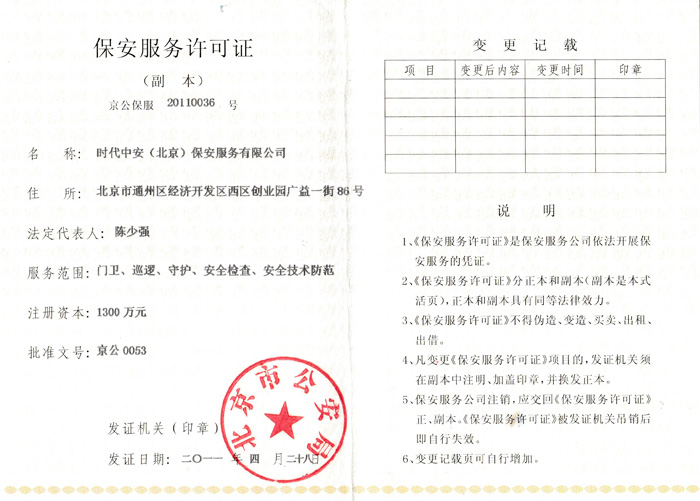 時(shí)代中安(北京)保安服務(wù)有限公司